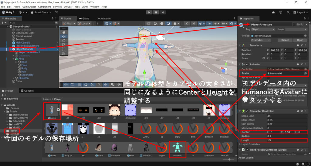 【Unity】ThirdPersonControllerのプレイヤーモデルをVRoidキャラクターに変更する方法